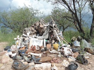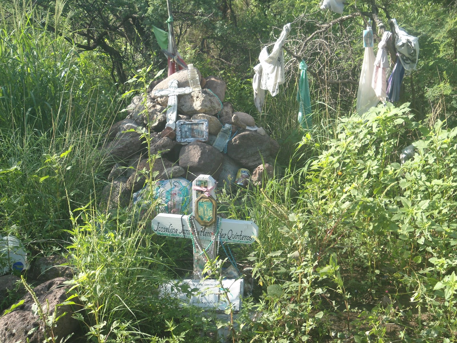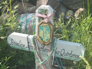 This marks the where the body of Josseline–a 14 year old girl traveling with her younger brother–was found by a No More Deaths volunteer after her coyote abandoned her in the desert.