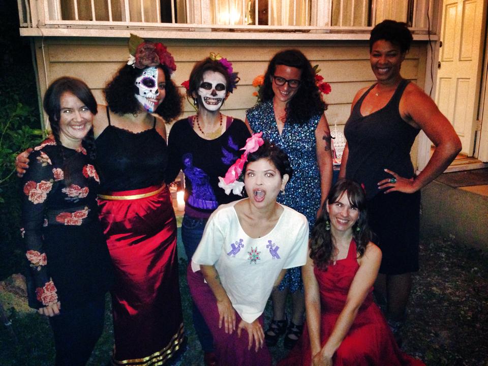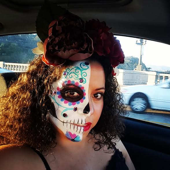 Later that day back at my own house, I asked my roommate to paint a calaca on my face for a reading I was going to in the evening. She’s a makeup artist, and I knew her work would look a hundred times better than anything I tried. She asked if I wanted half or full makeup. I said half, and I thought about the short again and how on this day we are all half with the living and half with the dead, and I was thankful for the opportunity to be closer to my grandmother.