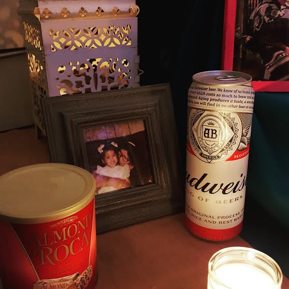 At the altar, I placed a photo of her holding me as a toddler, the only photo I know of just the two of us, along with a tin of Almond Rocas and a Budweiser tall can for my tata.